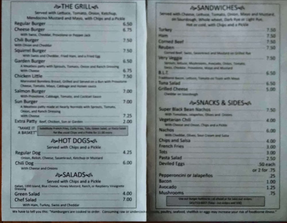 But let's talk about the food. Squirrel's Tavern boasts a mouthwatering menu with options like regular and chili burgers, hot dogs with various toppings, and fresh salads. Standout dishes include the Squirrel Burger with fried ham and a fried egg, the Garden Burger for vegetarians, and the Chicken Little sandwich.